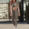 The crop top keeps a tight, minimal fit while incorporating asymmetrical splash elements, giving the upper piece a less uniform look. The high-waisted leggings extend the same concept, with darker sections concentrated around the hips and upper leg, then transitioning into lighter areas.