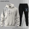 For the girls who prefer streetwear with sharp structure and standout designer-inspired detail, this Louis Vuitton-inspired matching hoodie set brings bold geometric contrast into everyday styling. The set includes a black pullover hoodie and matching jogger pants accented with striking checkerboard LV-style monogram panels in gray, blue, and black tones, creating a dramatic graphic focal point against the sleek monochrome base.