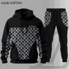 For the girls who prefer minimalist streetwear with subtle artistic detail, this Louis Vuitton-inspired matching hoodie set blends clean neutral contrast with refined asymmetrical monogram styling. The set includes a white pullover hoodie paired with black jogger pants, featuring delicate blue LV-style monogram motifs cascading diagonally across one shoulder for a soft дизайнер-inspired accent that feels modern and elevated.